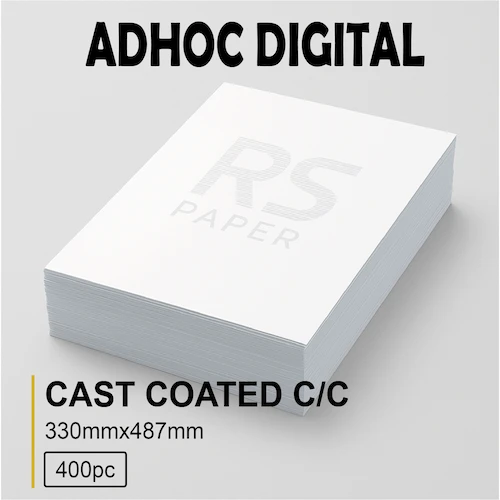 O Adhoc Digital Cast Mate C/C (33×48,7 cm – 400 folhas) é um papel autocolante de face única com acabamento cast coated mate (fosco) e toque semelhante a couche brilho, desenvolvido para impressões digitais que exigem definição superior, aspecto elegante e excelente aderência. A sua cola permanente garante fixação segura em diversas superfícies.