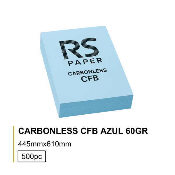 O Papel Carbonless CFB 60g Azul (44,5×61 cm – 500 folhas) é a folha intermédia (CFB – Coated Front and Back) do sistema autocopiativo, com revestimento químico em ambas as faces: recebe a cópia da folha anterior e transfere para a seguinte.