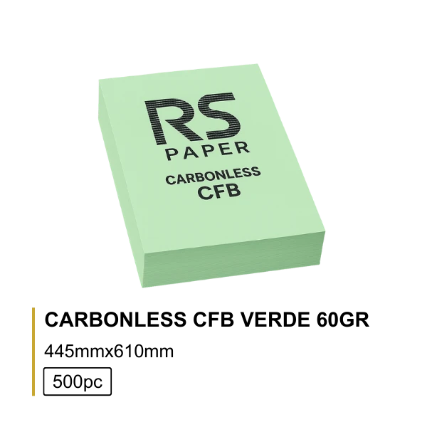 O Papel Carbonless CFB 60g Verde (44,5×61 cm – 500 folhas) é a folha intermédia (CFB) do sistema autocopiativo, com revestimento químico em ambas as faces, projetado para captar e transferir simultaneamente informação em blocos triplos.